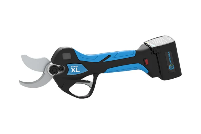 STARK XL rappresenta il modello più grande tra le forbici elettriche cordless di Campagnola con batteria plug-in. Con un’ampia apertura di 38 mm, è perfetta per effettuare tagli di notevole diametro, rendendola particolarmente indicata per agrumeti, oliveti e piante ornamentali.