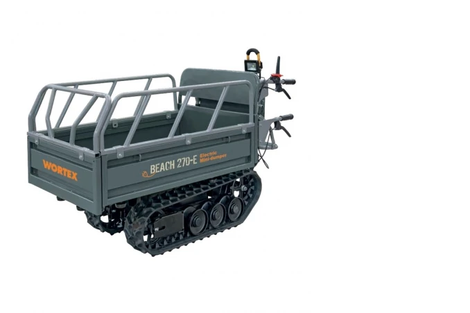 La carriola elettrica Beach 270-E è una macchina silenziosa, robusta e versatile, dotata di batteria che garantisce un’autonomia di lavoro di 5/6 ore. È adatta per l’uso in luoghi chiusi come costruzioni edili, serre, cantine e industrie, in grado di trasportare qualsiasi tipo di materiale in ambito agricolo, edile e forestale. Grazie alle 2 ruote pneumatiche anteriori, può operare su diversi tipi di terreno. Costruita con un solido telaio in acciaio ad alta resistenza, presenta un cassone a ribaltamento idraulico e ingrassatore, garantendo una portata utile di 450 kg.