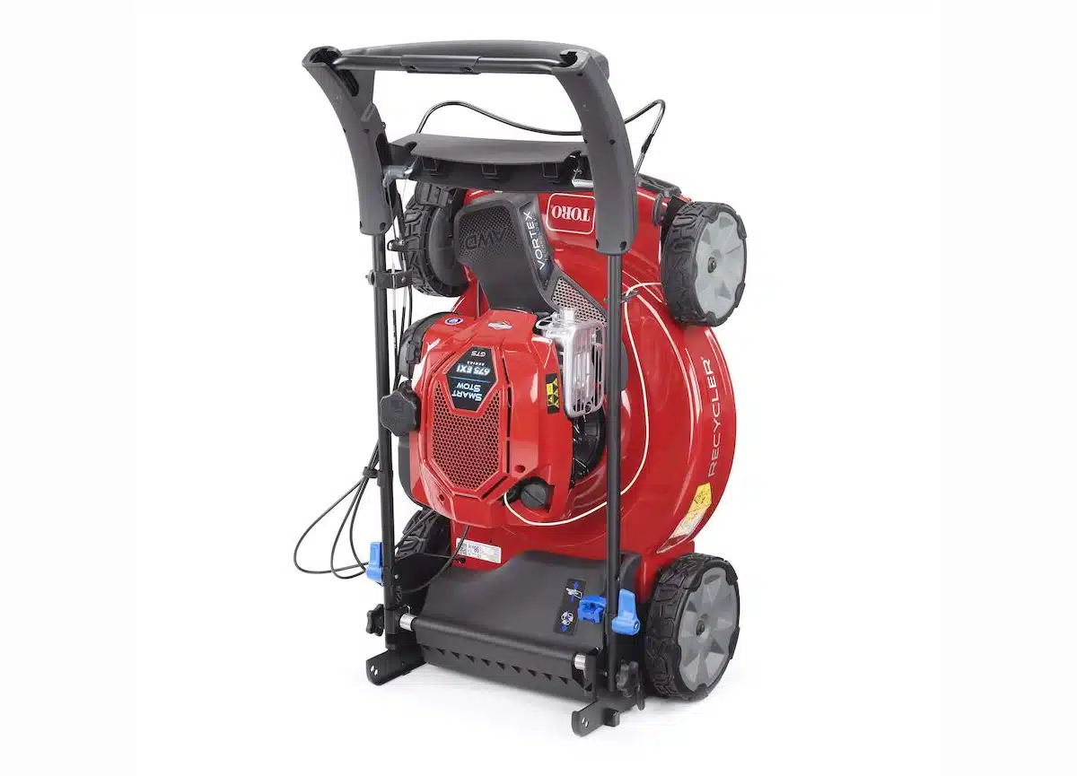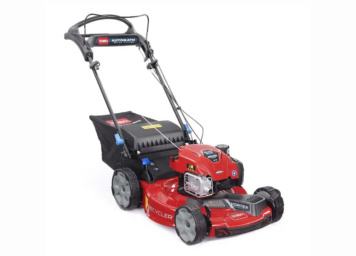 Tosate prati di grandi dimensioni fino a 1000 metri quadrati con questo Recycler® S55AWST con alimentazione a benzina e sistema di avanzamento AutoMatic di Toro, che presenta un’ampia larghezza di taglio di 55 cm e un potente motore Briggs & Stratton® da 163 cc. Il sistema di avanzamento AutoMatic semovente consente la facile regolazione al vostro passo, e la trazione integrale con controllo della trazione dona un comfort e una trazione maggiori per terreni impegnativi. Con Vortex Technology®, il flusso dell’aria è potenziato, e questo consente di tirare l’erba in verticale per un taglio migliore. In combinazione con la capacità del cesto di raccolta dell’erba a bocca larga fino a 63 litri, vi consente di dedicare più tempo alla tosatura che a svuotare il cesto di raccolta. È possibile impostare il tosaerba a seconda delle vostre preferenze della modalità di Recycler o raccolta, e il Recycle on Demand vi consente di passare dalla modalità di raccolta a quella di mulching in pochi secondi spostando semplicemente la leva di cambio rapido, con il cesto montato su ambo i lati. La funzionalità SmartStow® consente il rimessaggio verticale del tosaerba, riducendo lo spazio di stoccaggio e offrendo un rapido accesso per la pulizia del sottoscocca.