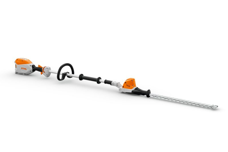 Tagliasiepi Stihl HLA 66 telescopico allungato a batteria per siepi alte e larghe. Ideale per il taglio verticale, laterale e sopra la testa, coltelli orientabili di 115°, grande portata, coltelli affilati su entrambi i lati, posizione di trasporto 125 cm, lunghezza totale, 205 cm.