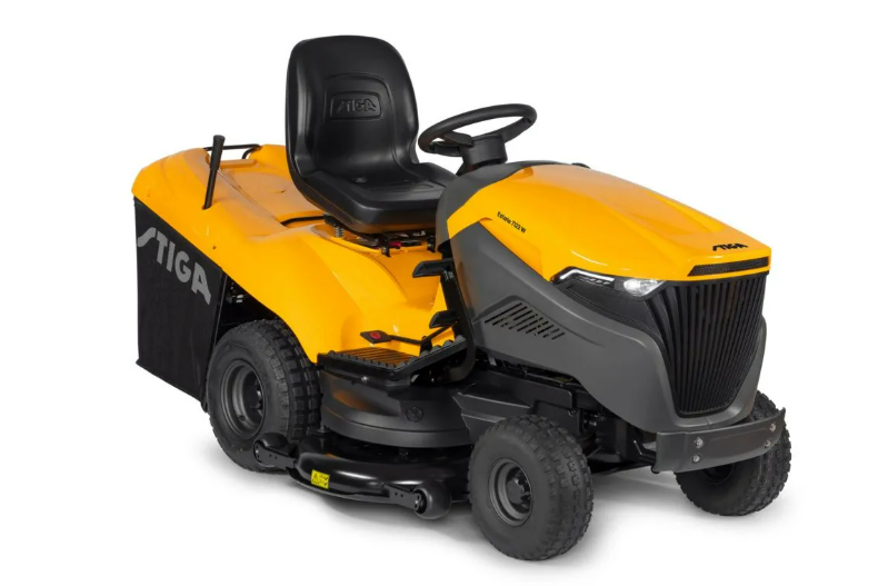 Trattorino Stiga Estate 7122 W. Trattorino ad alte prestazioni con larghezza di taglio da 122 cm, doppie lame sincronizzate e potente motore bicilindrico Stiga da 21 cv. Equipaggiato con un capiente sacco di raccolta da 320 L. Il compagno di lavoro ideale per tagliare e raccogliere l’erba in giardini fino a 10.000 m2 di superficie. Fari a led professionali, sedile ammortizzato in pelle con braccioli, sostegni laterali per piatto di taglio e display multifunzionale maggiorato con pannello di controllo rendono il 7122 W un trattorino premium al 100%.